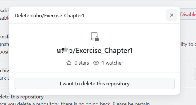 3. I want to delete this repository 클릭 -> 하단 또 클릭